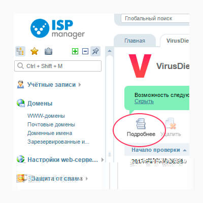 In partnership with ISPsystem, based on the Virusdie.Server server solution, a module for automatic scanning and site cleanup for the ISPmanager server control panel was developed and launched. (Product shutted down in 2020 as out of Virusdie strategy).